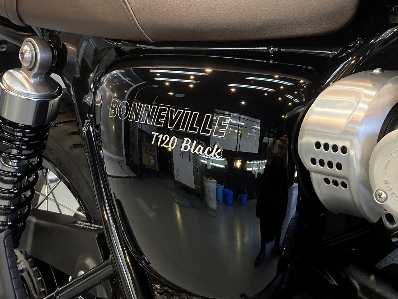 今回はソリッドブラックのボンネビルにPプランで作業させていただきました。