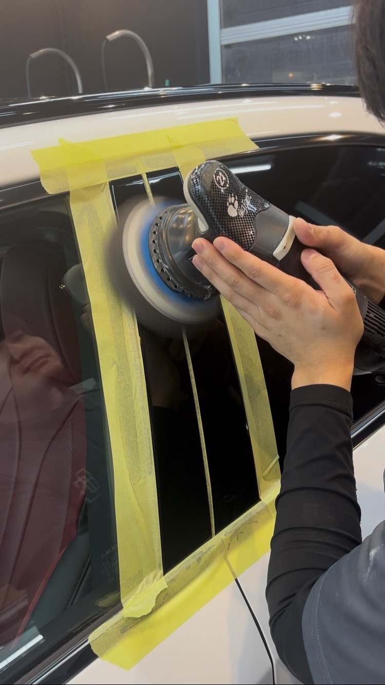 研磨作業を行うことで、塗装面の微細な傷やくすみの原因になるシミなど
