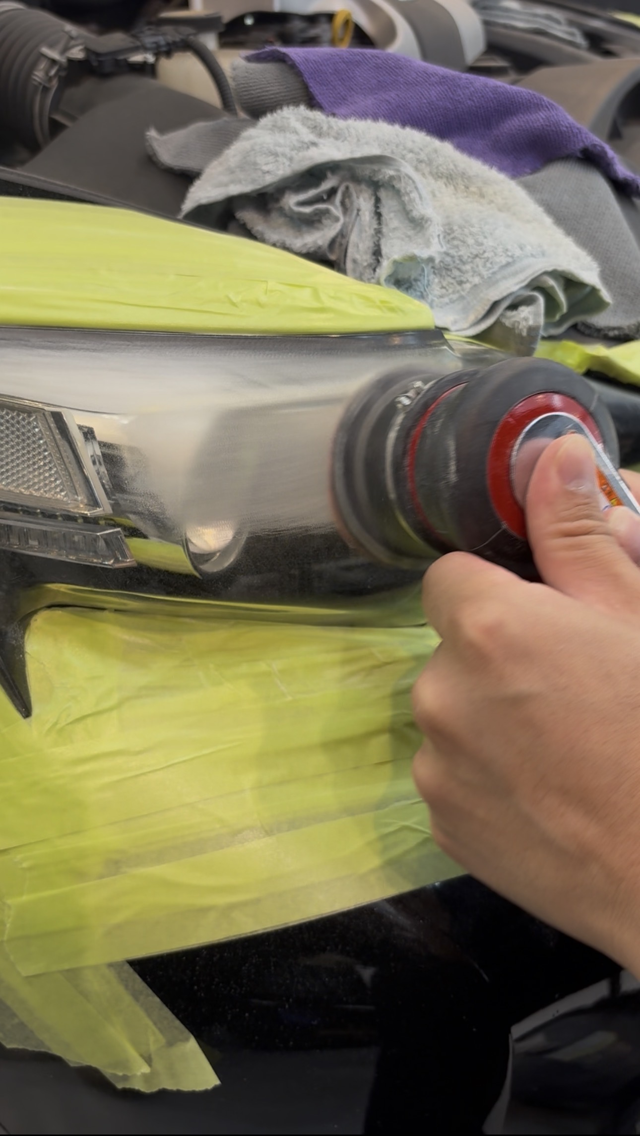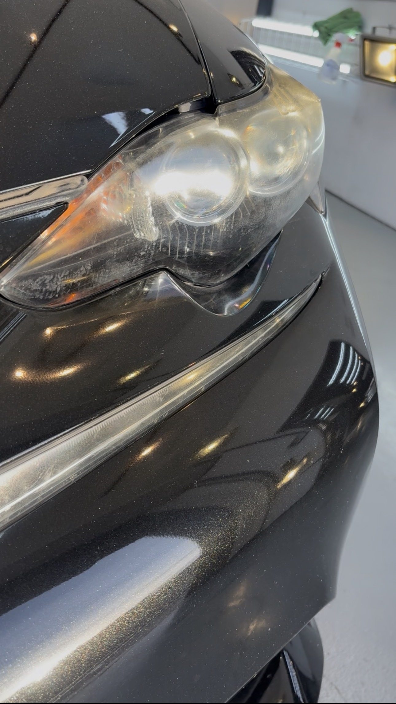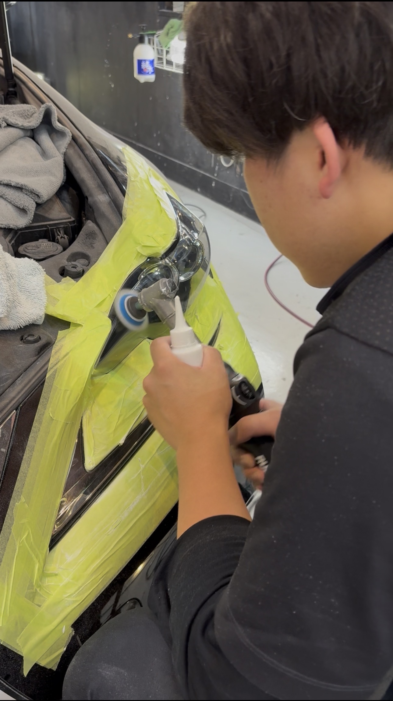 新品同然の透明感まで磨き上げ、保護用のプロテクションフィルムを貼れば作業完了です。