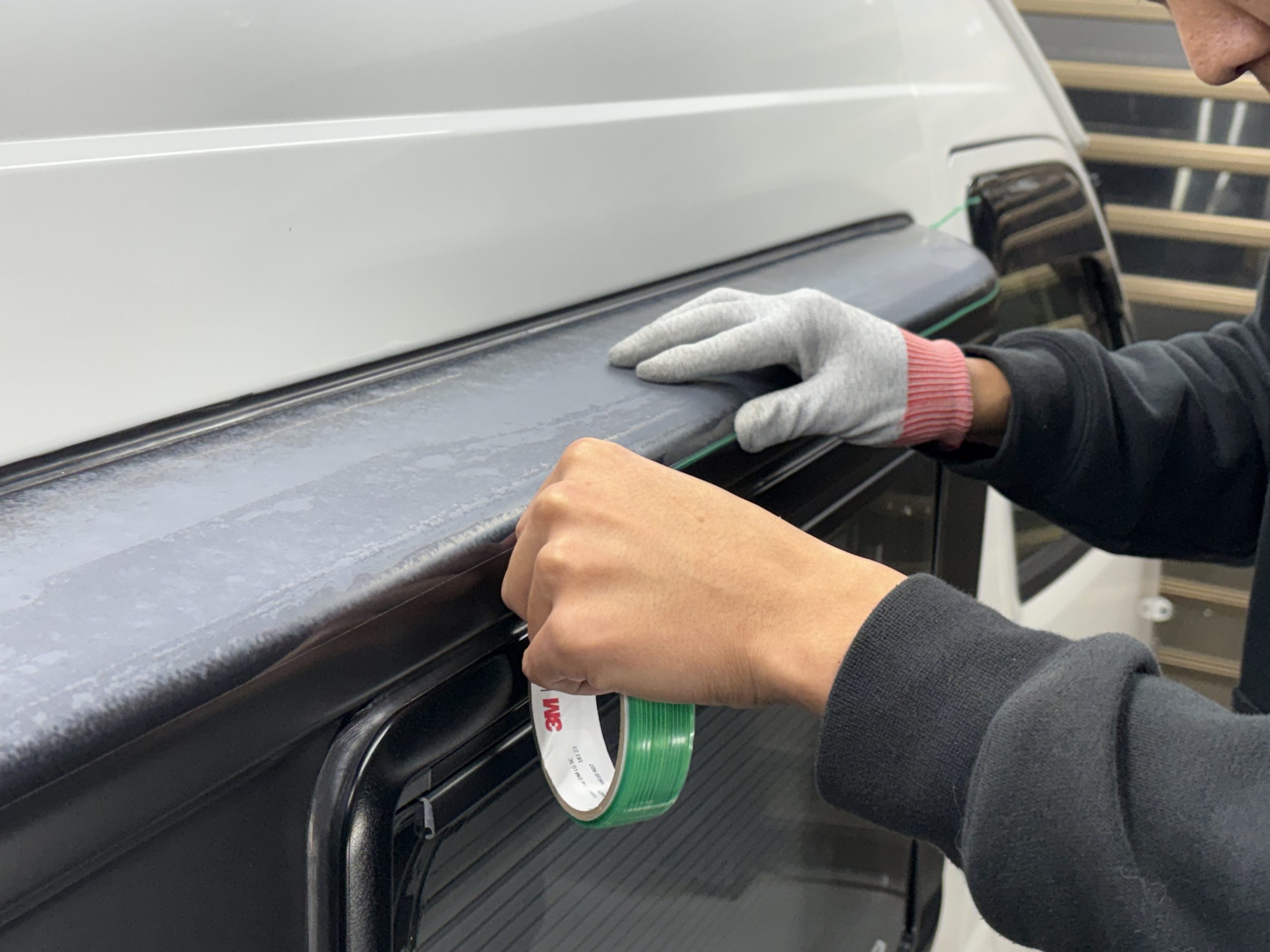 下地を終らせた後、ナイフレステープを貼っていきます。