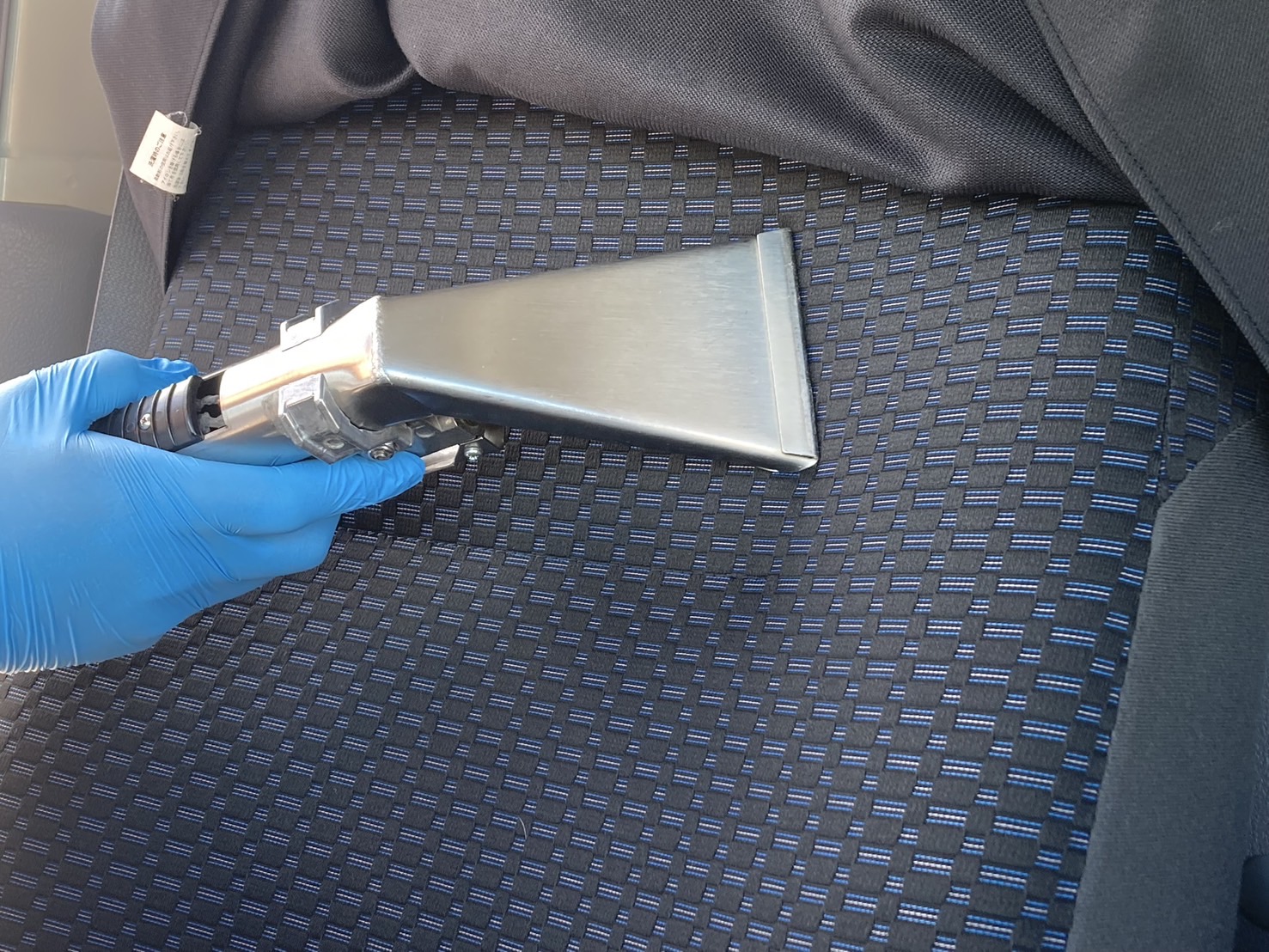 リンサークリーナーを用いてシートを洗浄していきます。