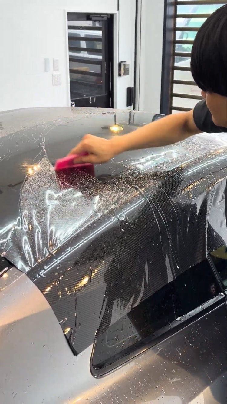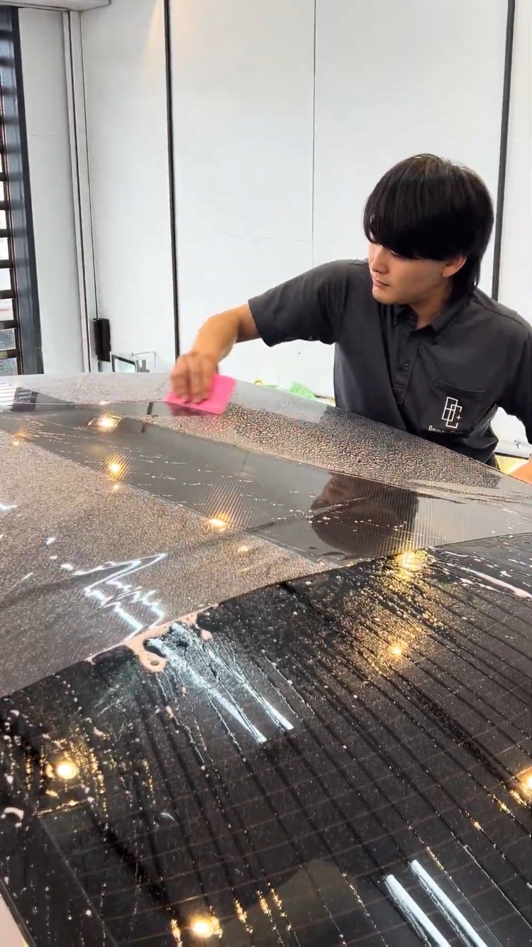 ルーフも同様に大き目に切り出したPPFを施工していきます。