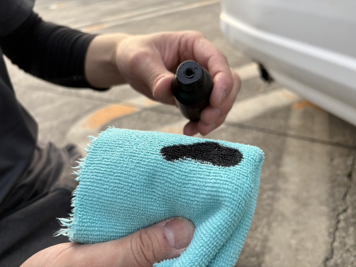 コーティングを塗るだけでここまで色濃い黒に戻すことが出来ます。