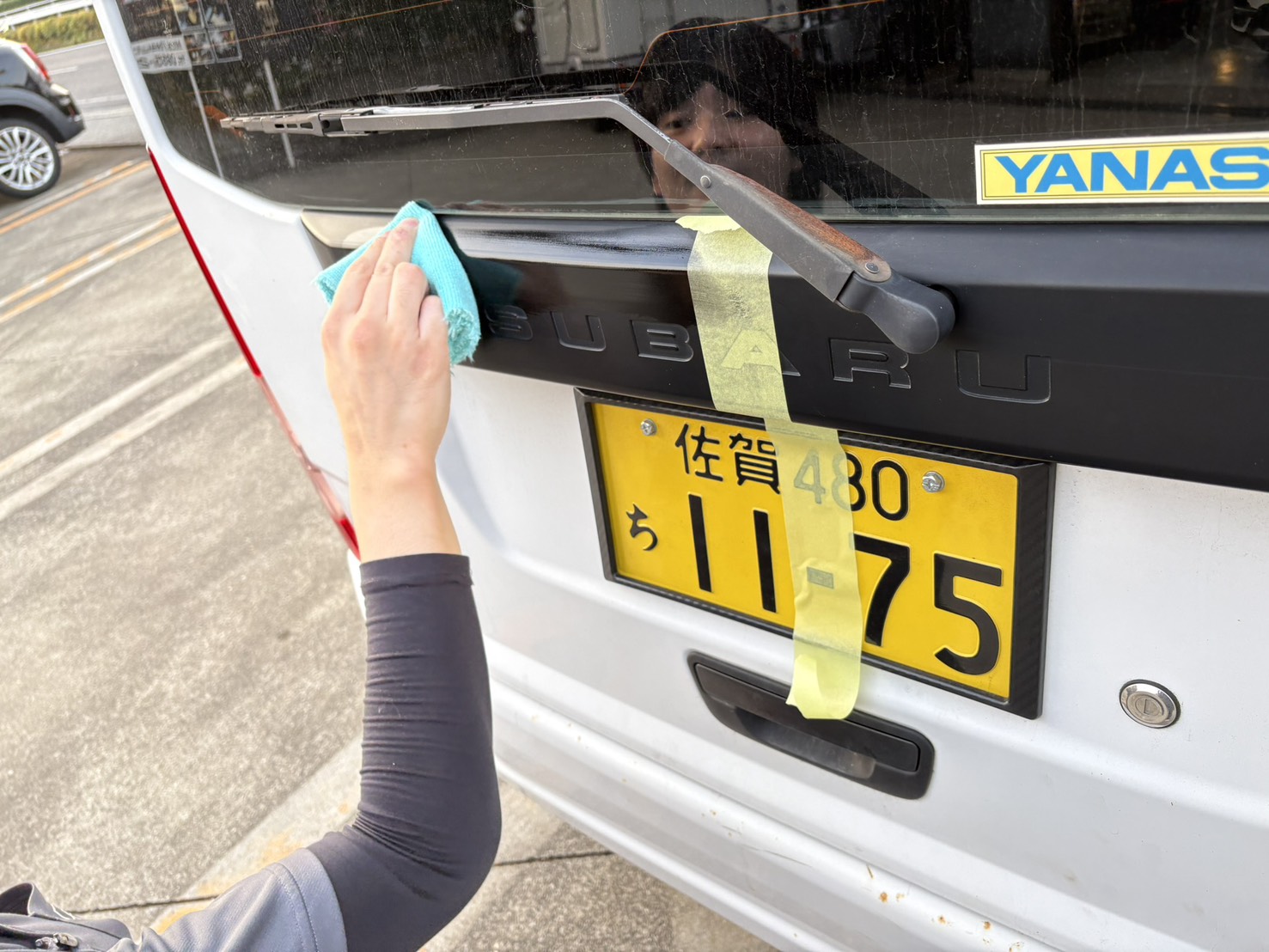 ワイパーの付け根の箇所のスバルの刻印がある樹脂の箇所です。